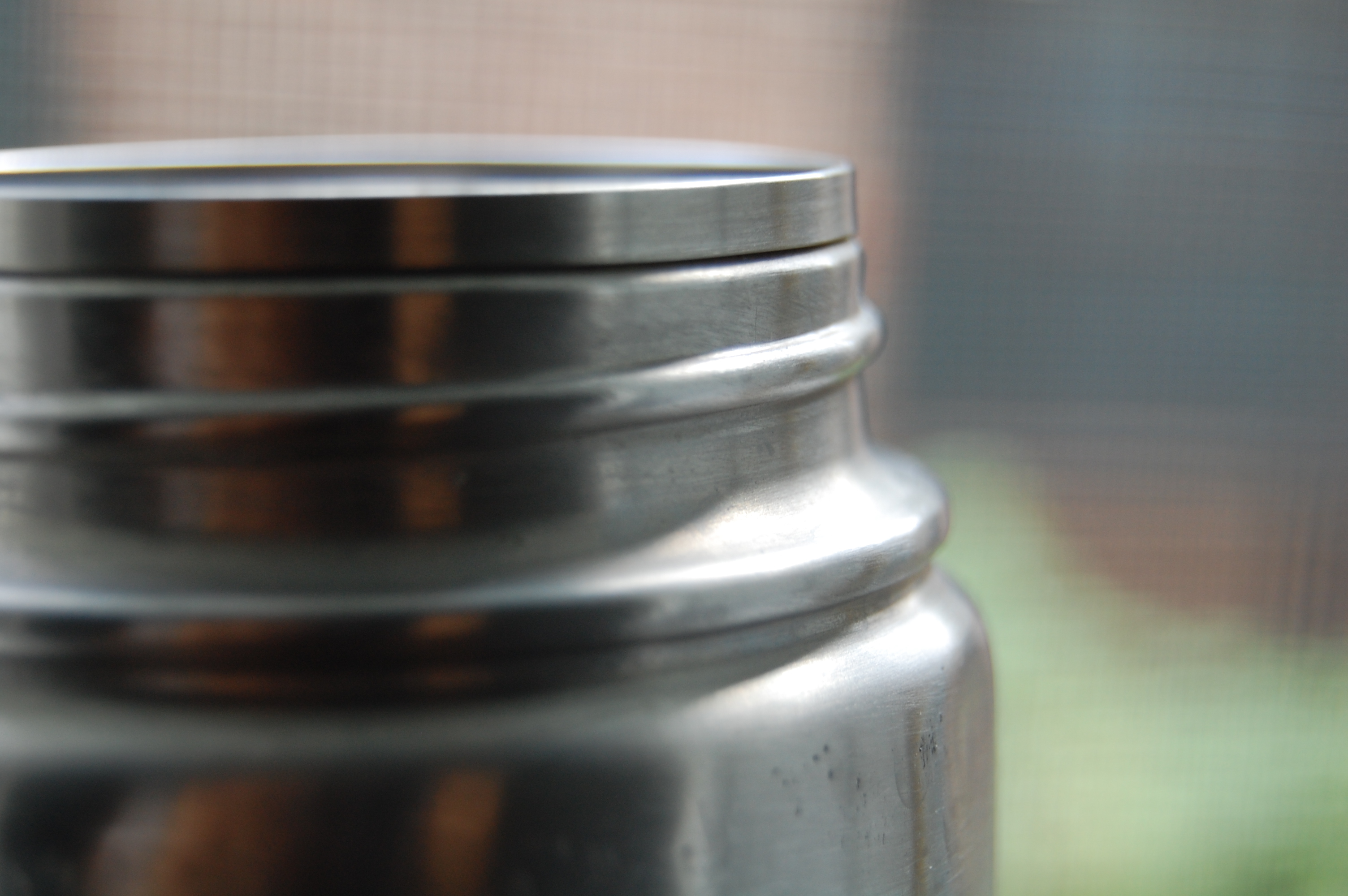 No plastic since the BPA scare, so no Nalgene. Glass is nice, but too delicate. Metal is the best option, and preferably without a synthetic lining like my Liberty Bottle. Linings, at least in my experience, have a tendency to disintegrate and that’s scary/disgusting.